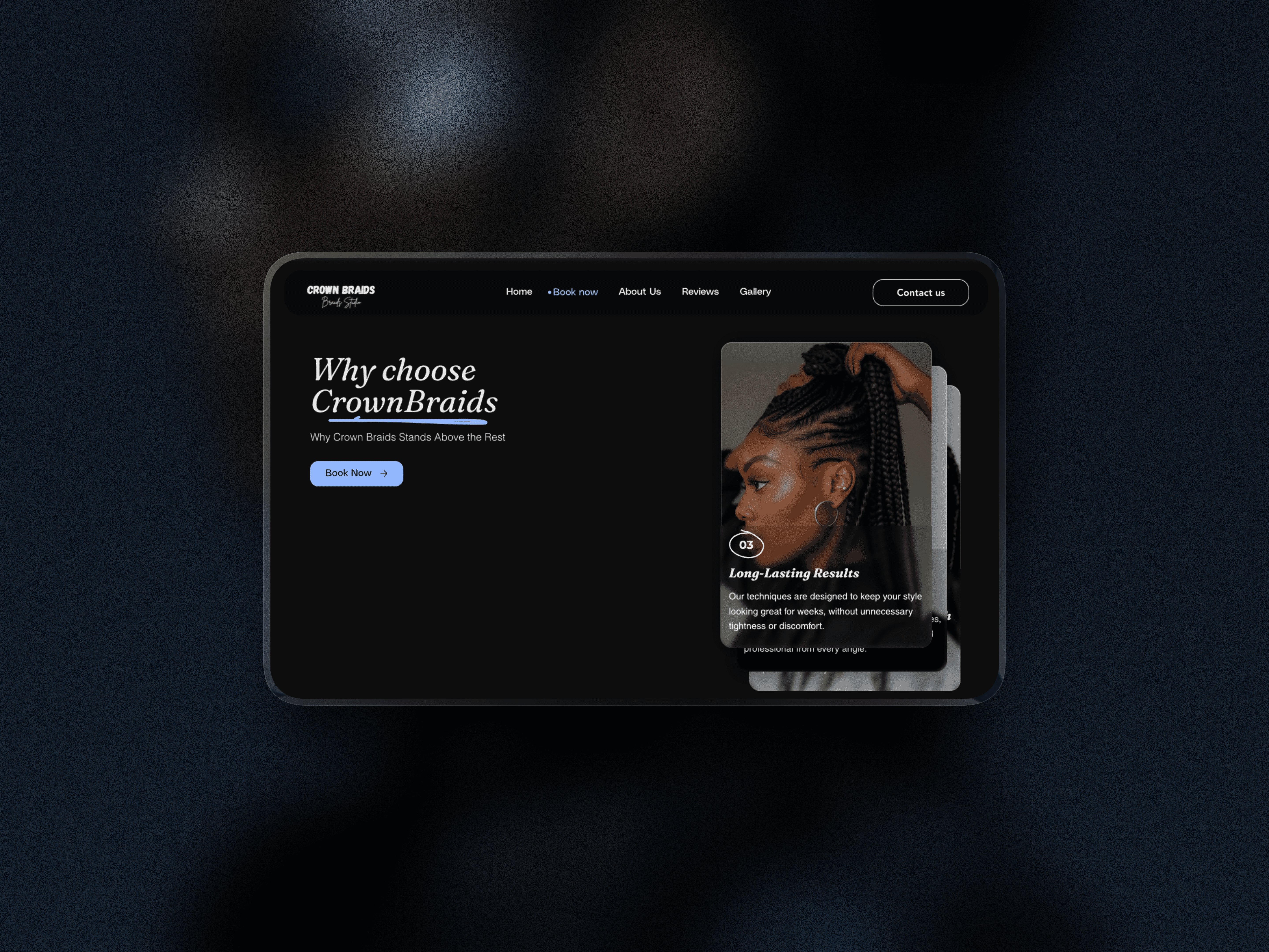 Crown Braids is a clean, modern website template built in Wix Studio, designed specifically for braiders and hair professionals who want to look established, professional, and easy to book.