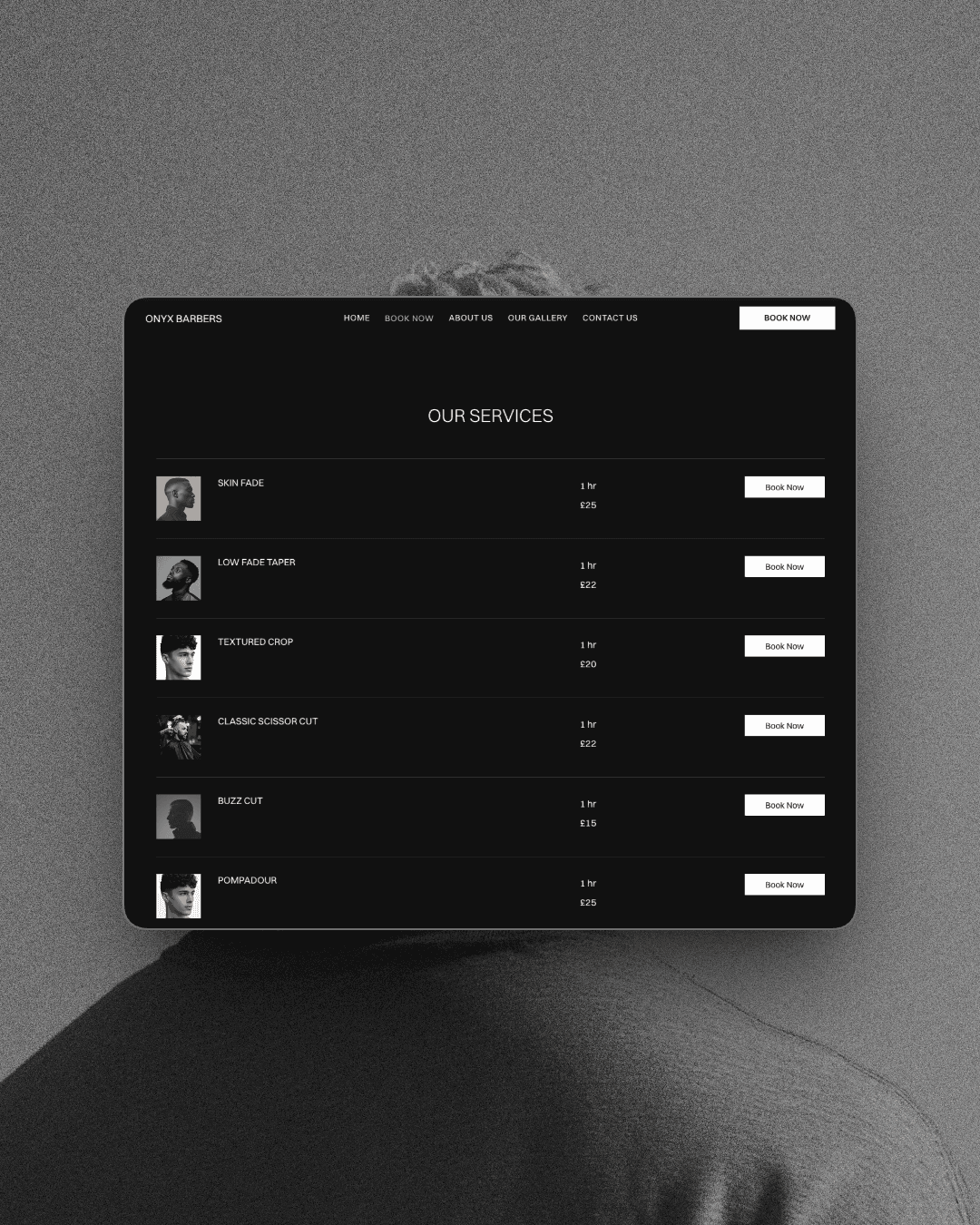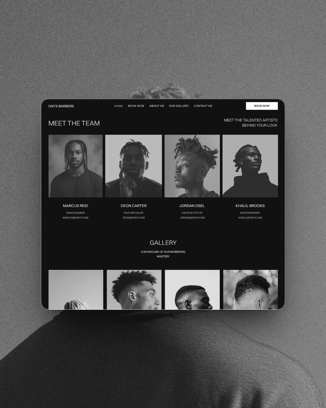 ONYX BARBERS is a premium barbershop website template built in Wix Studio for barbers and grooming brands that want a sharp, professional online presence without the cost of a custom build.